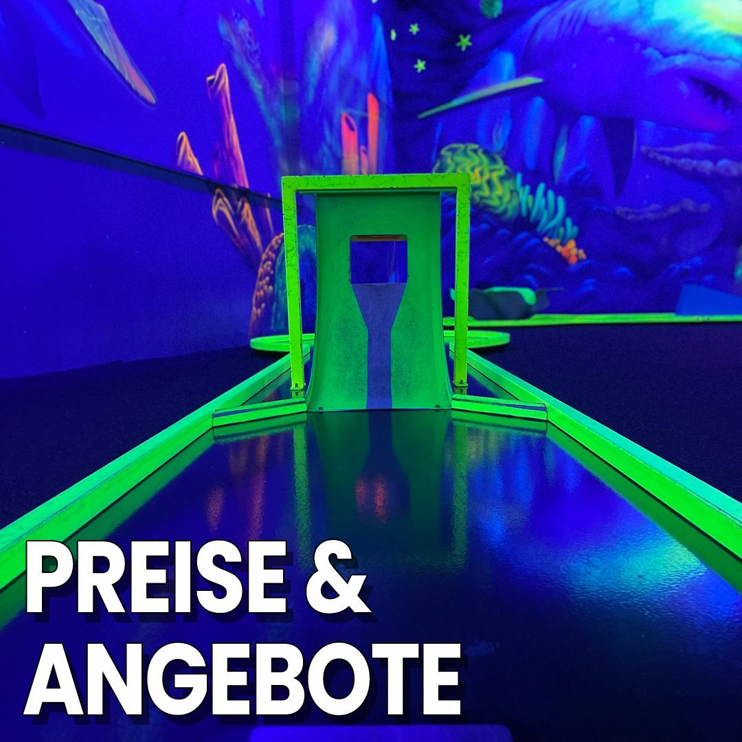Auf einer Fläche von 500 m² führen 18 Minigolf Bahnen in verschiedenen Schwierigkeitsgraden durch eine Welt aus fluoreszierenden Farbexplosionen.